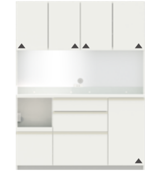| 奥行44.5cm | ¥154,800(税込) | ¥164,800(税込) | ¥174,800(税込) | ¥184,800(税込) | ¥87,800(税込) | ¥103,800(税込) | レギュラーカウンター 開き扉タイプ▲マークがある方に丁番があります。 |