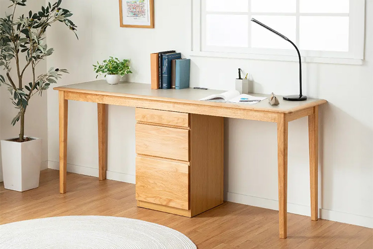 • ステップUPデスクのハイエンドモデル ナラ材の質感が落ち着いた印象