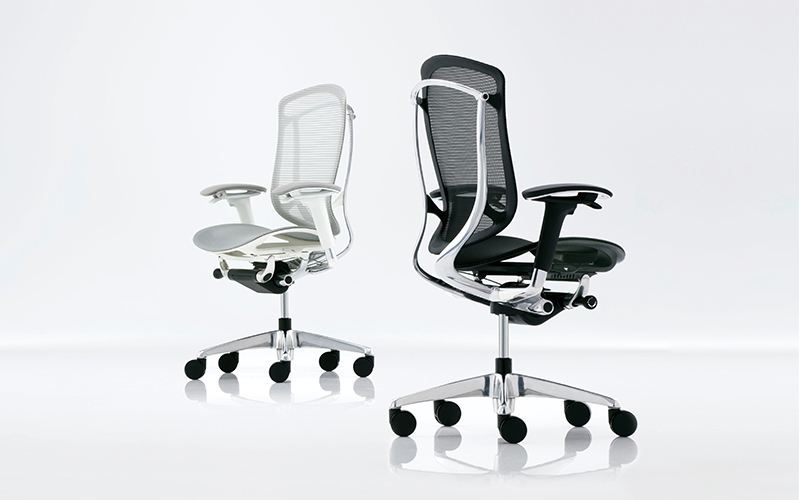 背フレームの薄さを追求-適度な柔軟性をもち、座る人の体の動きにやわらかく追従。座フレームはリング構造を採用-座面のホールド感が向上。体圧を分散し、安定感のある座り心地を提供。クッションタイプ、異硬度クッション採用-オカムラ独自技術で硬さの異なる3種類のウレタンを一体成型。