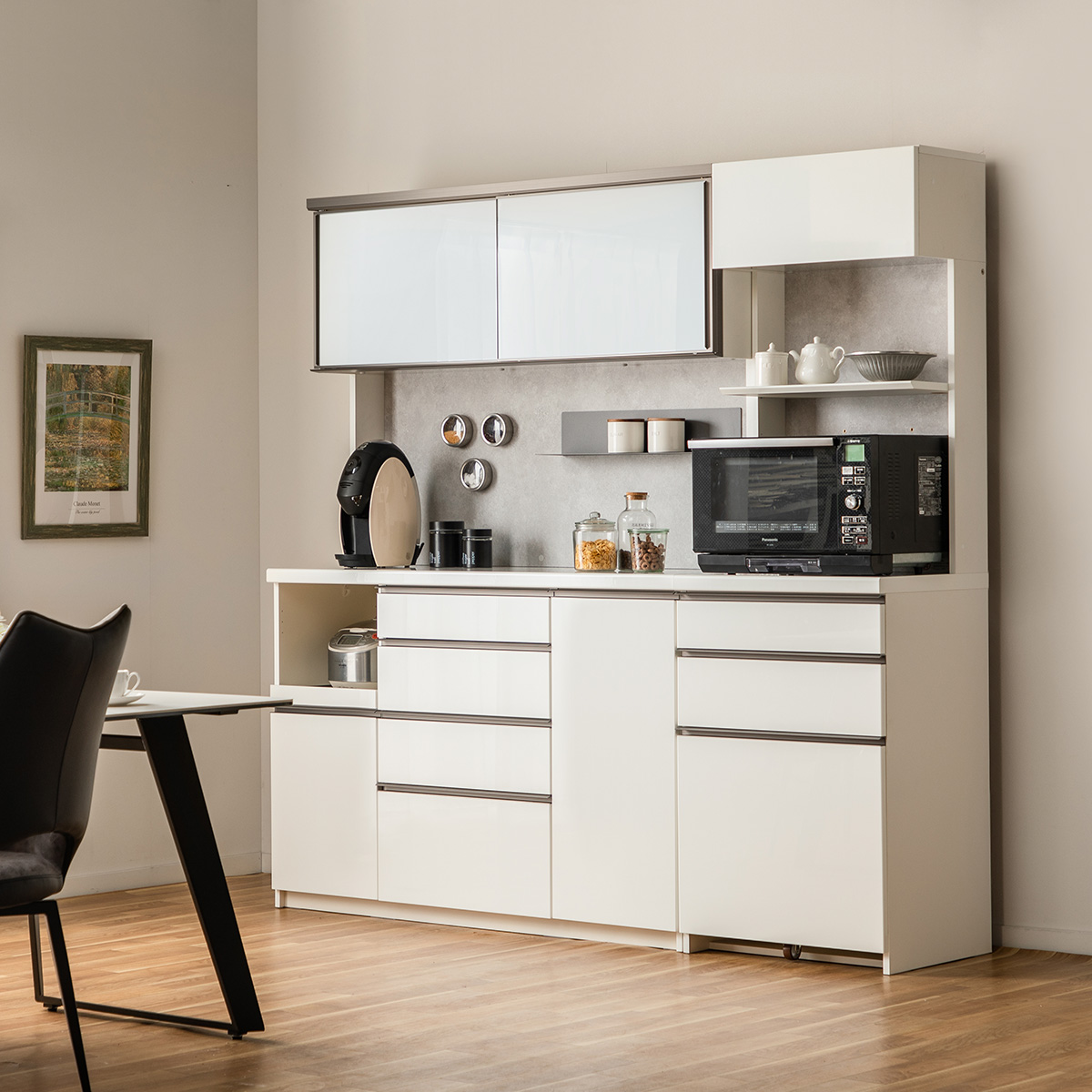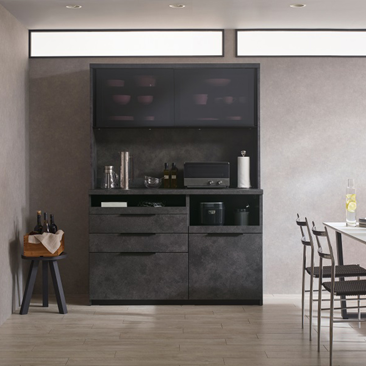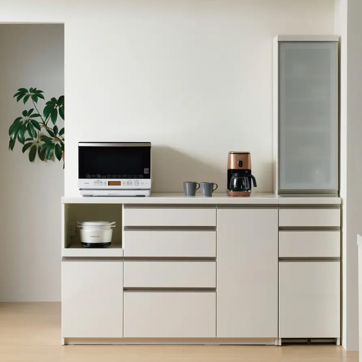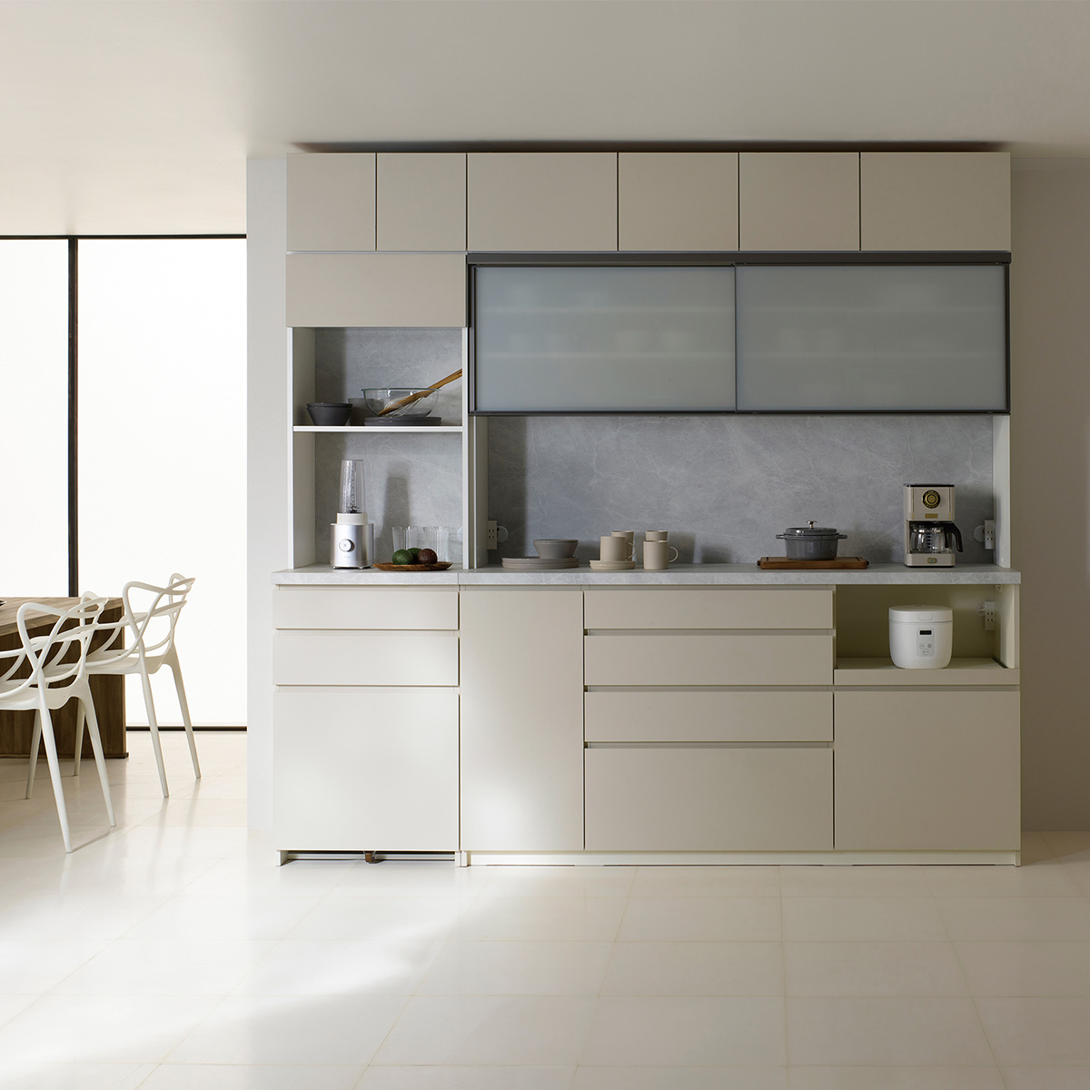 必要な機能がまとまった、デザイン性に優れたハイカウンター食器棚
