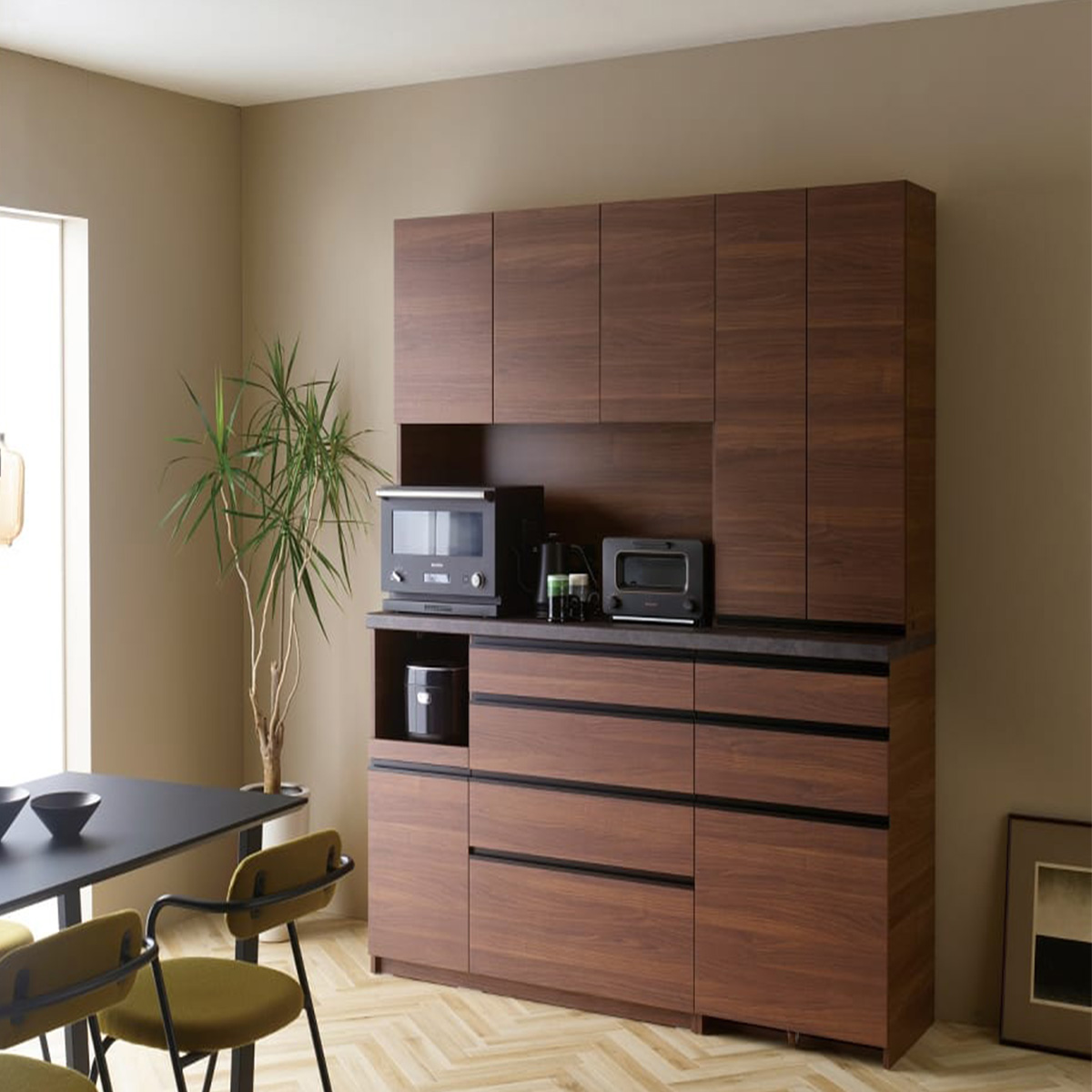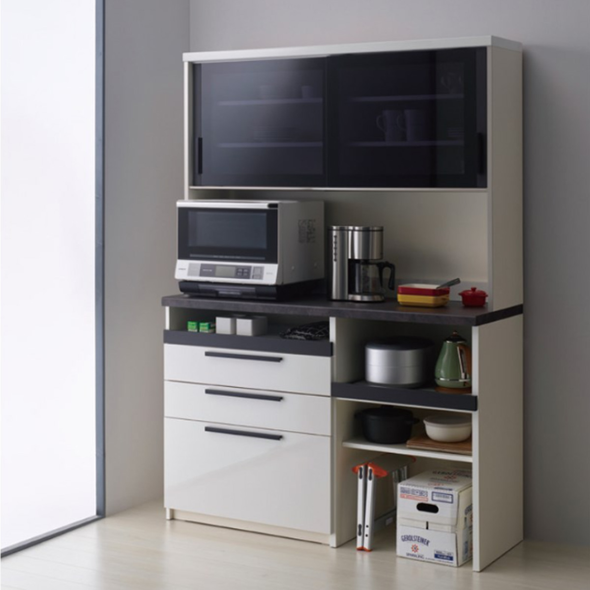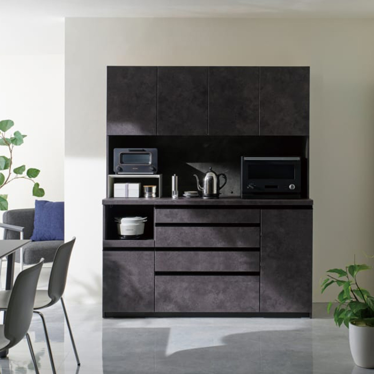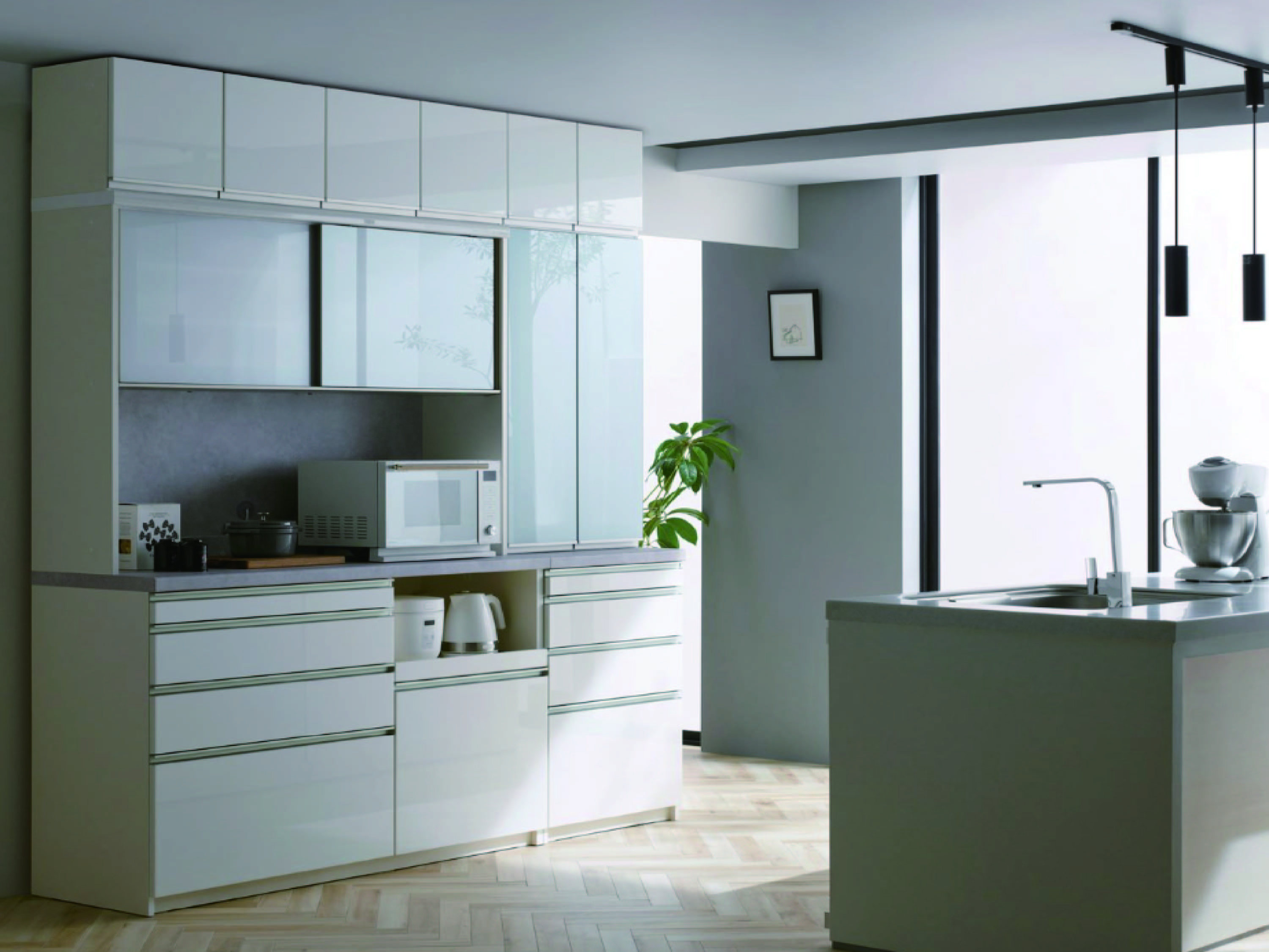 必要な機能がまとまった、デザイン性に優れたハイカウンター食器棚