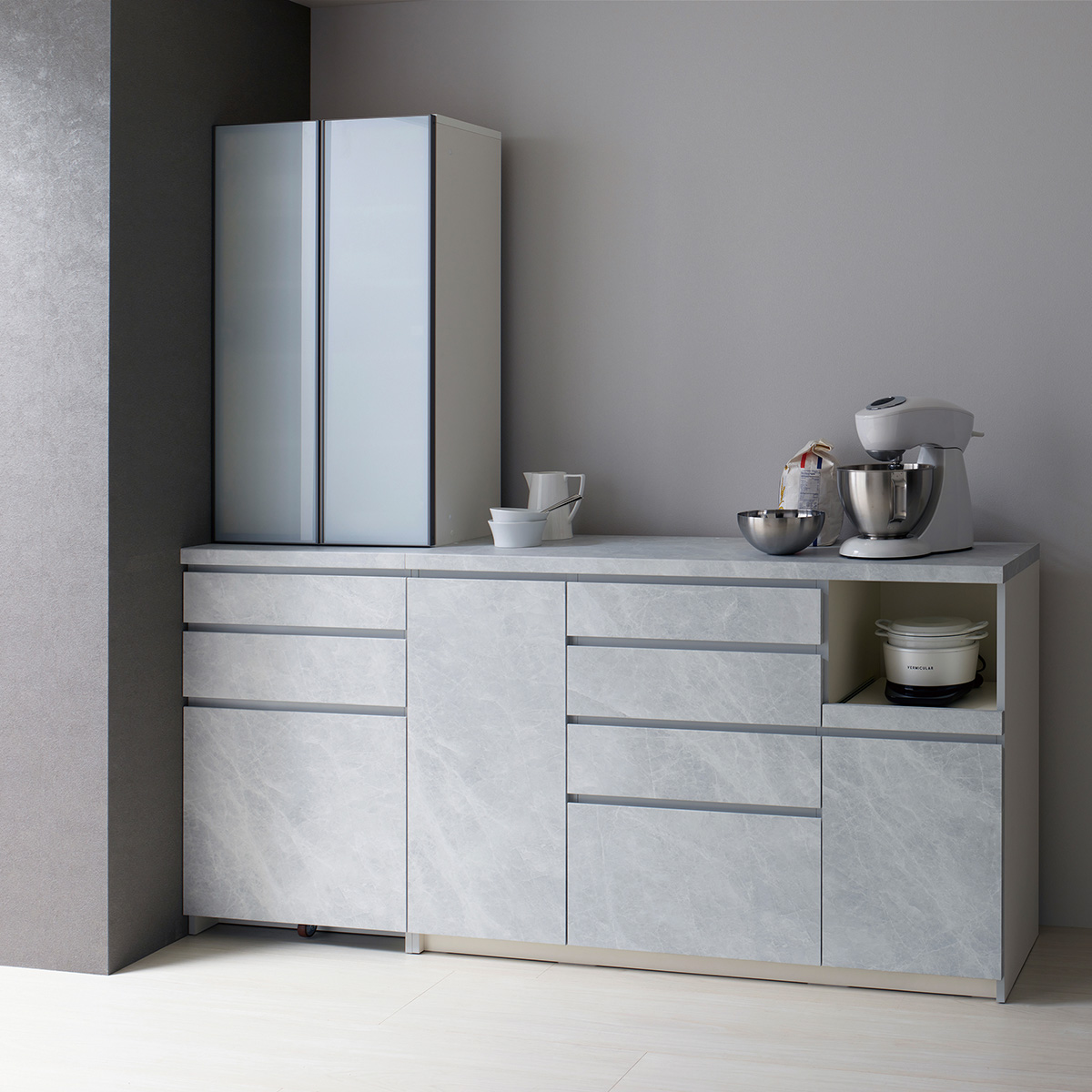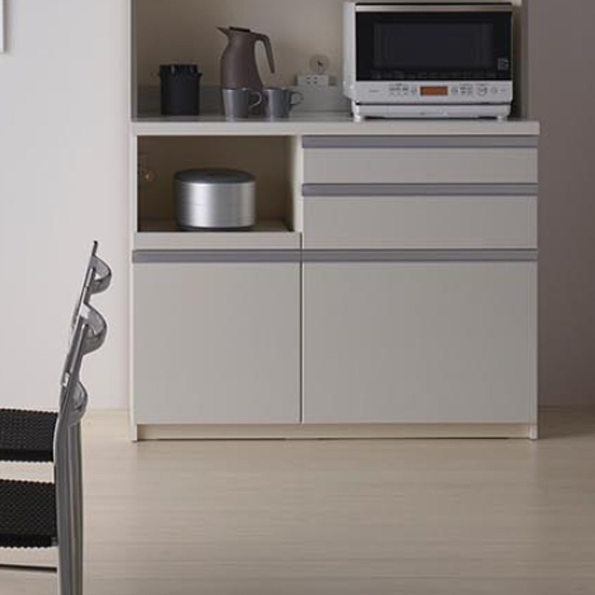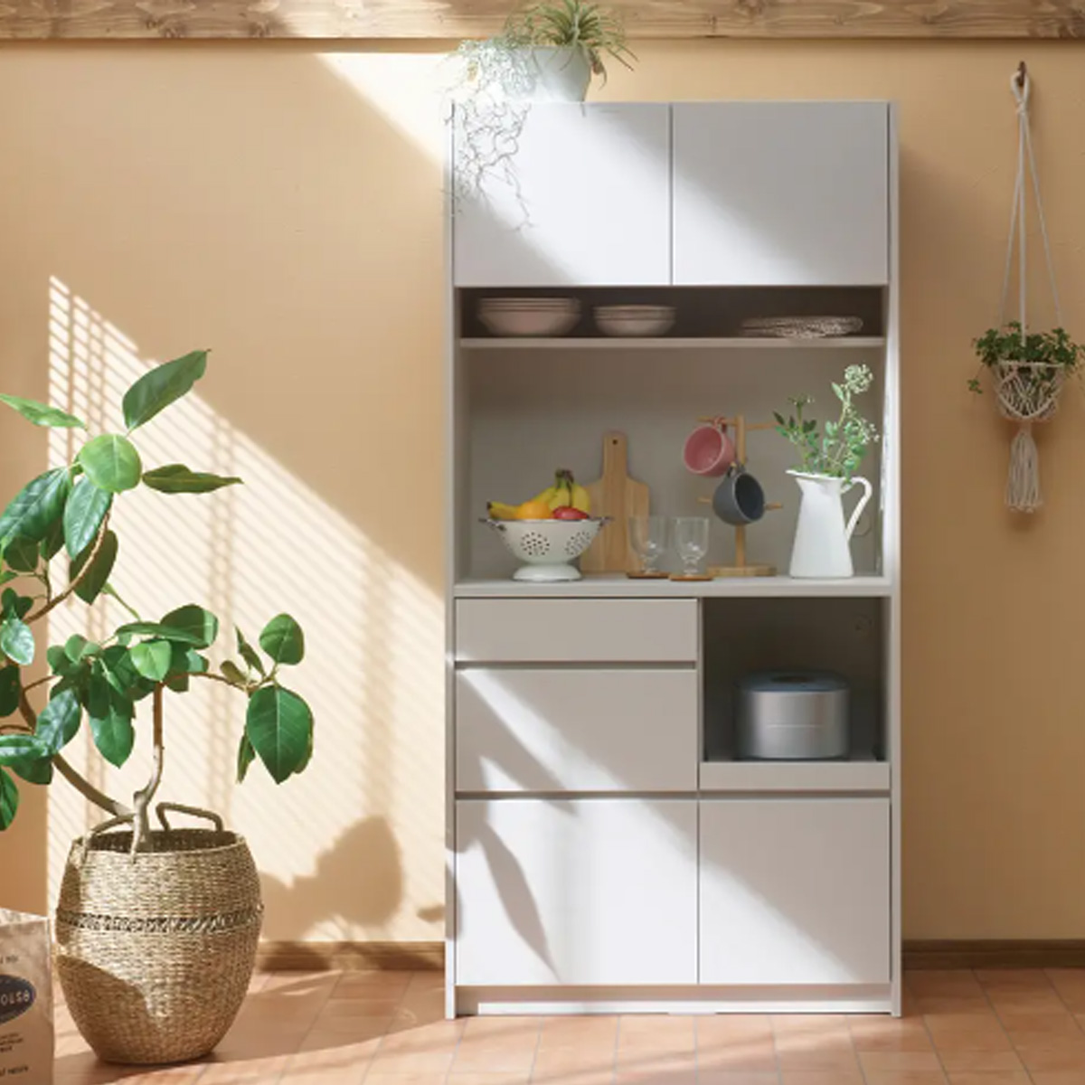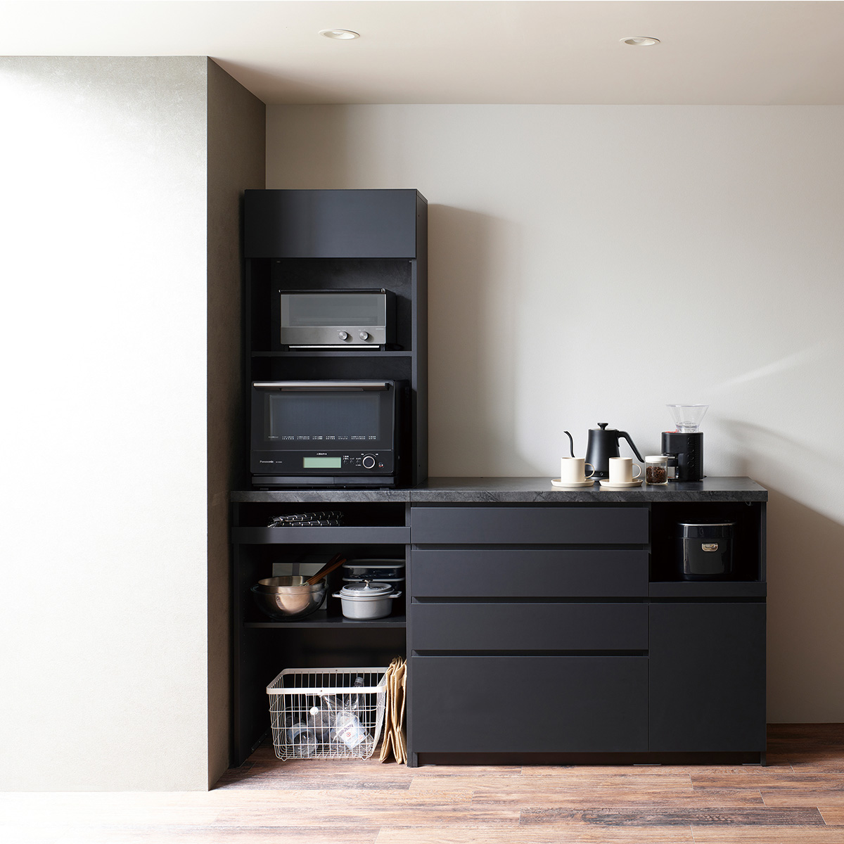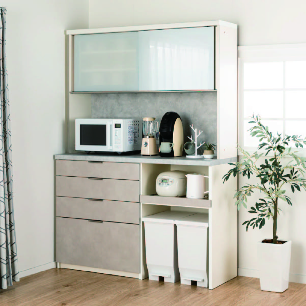 必要な機能がまとまった、デザイン性に優れたハイカウンター食器棚
