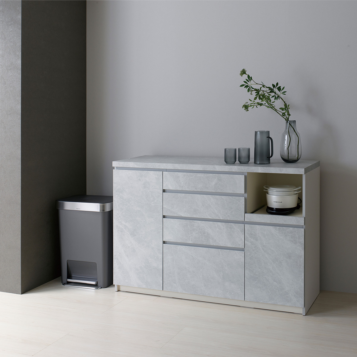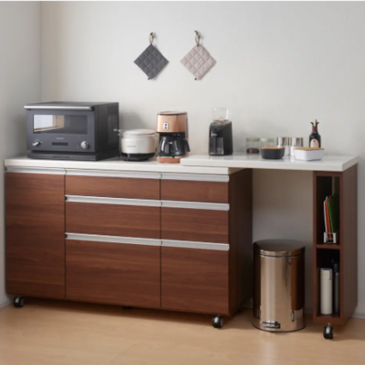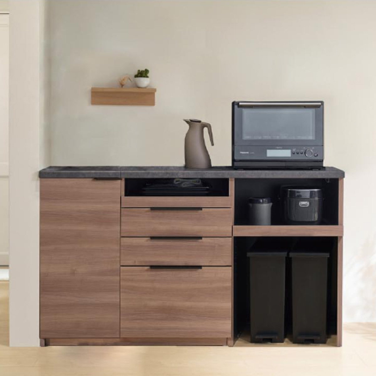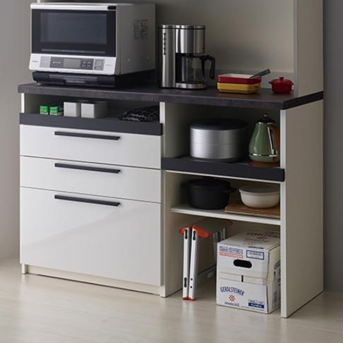 必要な機能がまとまった、デザイン性に優れたハイカウンター食器棚