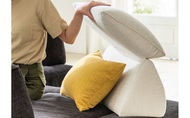 オプションの背クッションは、スリットのある部分に自由に差し込んでご使用いただけます。お好みの位置に取り付けられるので、自分だけのソファにカスタマイズできます。