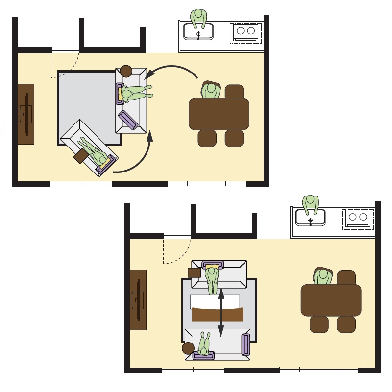 リビングエリアだけでなく、ダイニングエリアに向けて座ることも容易にできます。
