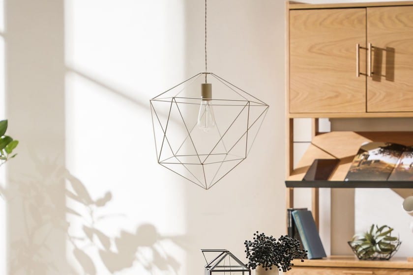 ワイヤー系のデザインは異素材ミックスにもなり、部屋に特徴を与えてくれます。また、意外とどんな部屋にもなじむのがメリット。ワイヤーが幾重にも重なるデザインは独創的な雰囲気ながら、ワンランク上の個性を感じさせます。