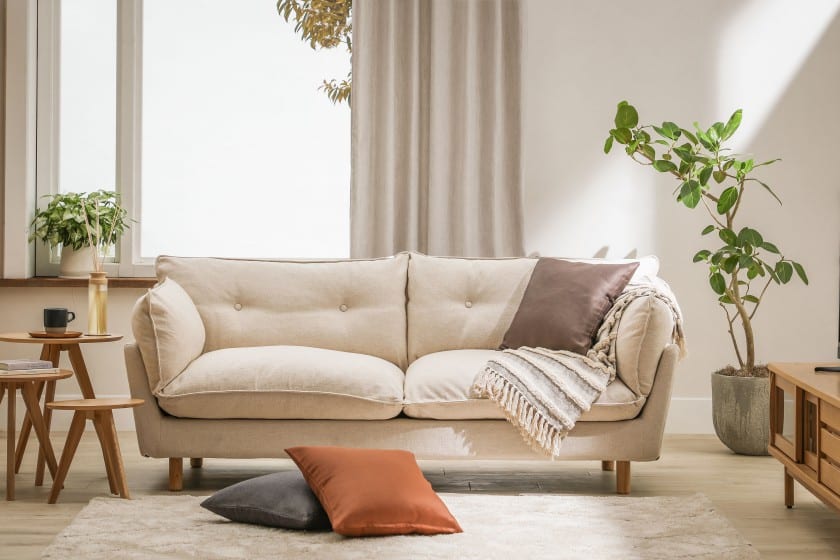 リビングの主役になるソファはデザインを重視して、ゆったり座れるボリューム感のあるものにします。自分らしさが表現できるパワーアイテムなので、ソファのフォルムだったり、クッション部分のボタン締めだったり、細部にこだわって選びましょう。ちょっとしたこだわりが洗練された雰囲気を作ります。オーソドックスなデザインより遊び心があるデザインを選んでみましょう。デザインに遊び心を入れるので、色は主張しすぎない色にするのがポイントです。
