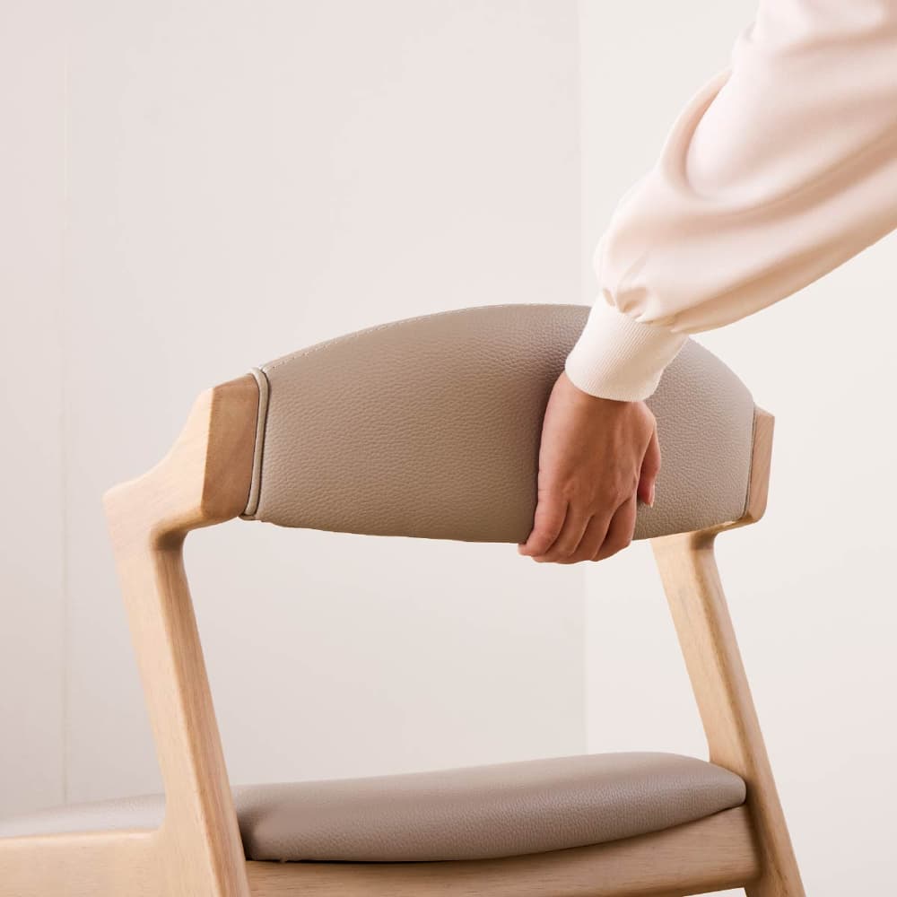 ◆ちょっと肘を置くのにちょうどいい「ちょい肘」仕様。◆座面には汚れてもサッと拭ける合成皮革を使用。