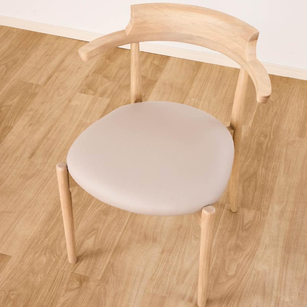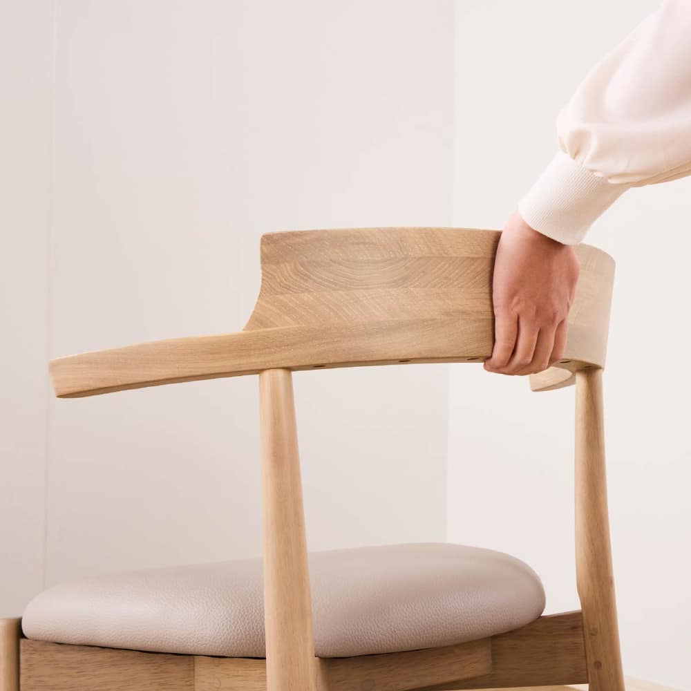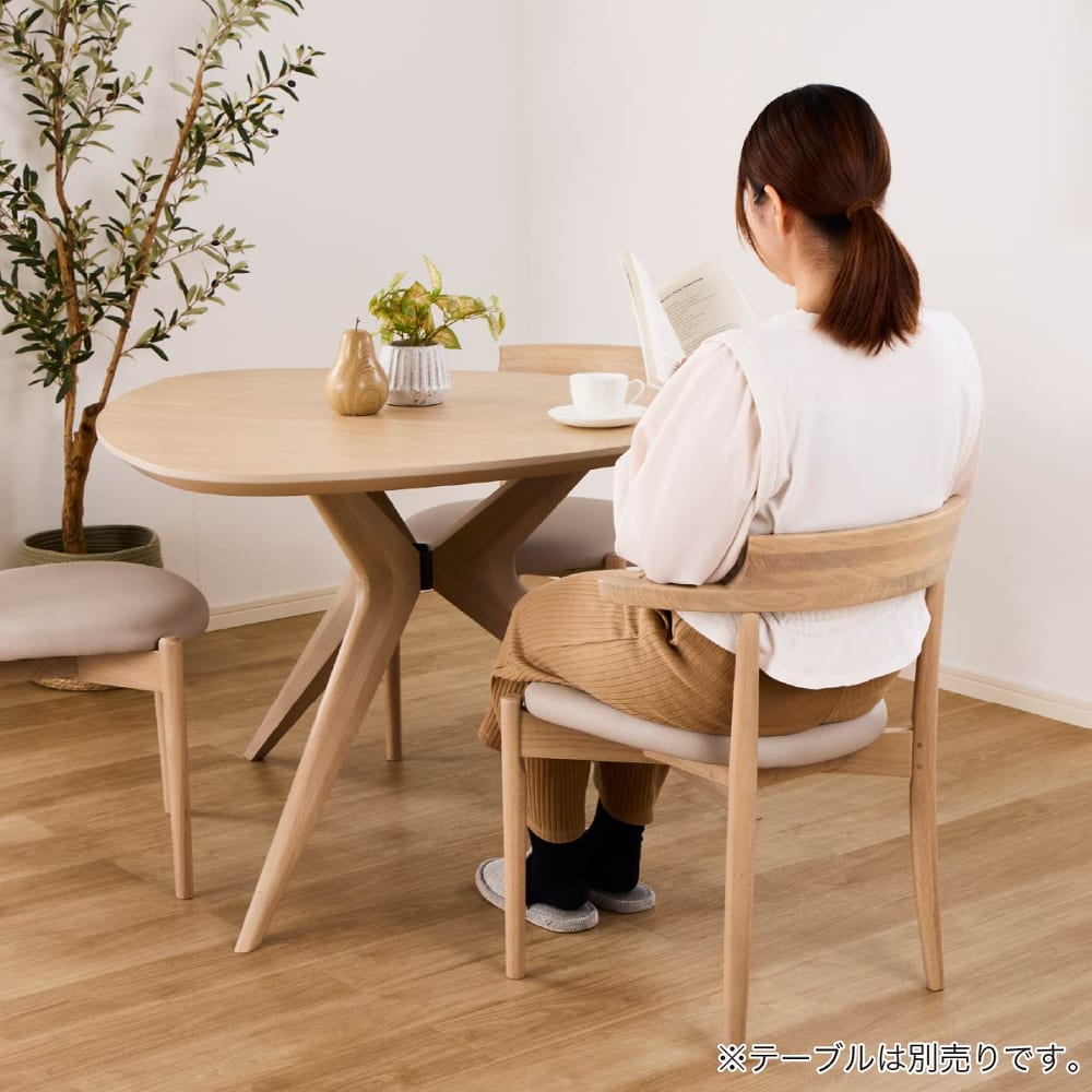 ◆セミアームタイプなのでテーブルに引っかけて浮かすことが可能。◆背もたれは背中にフィットする丸み形状。