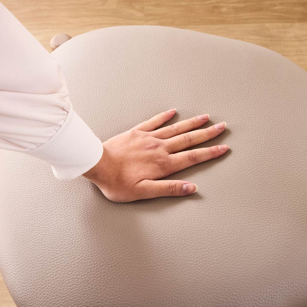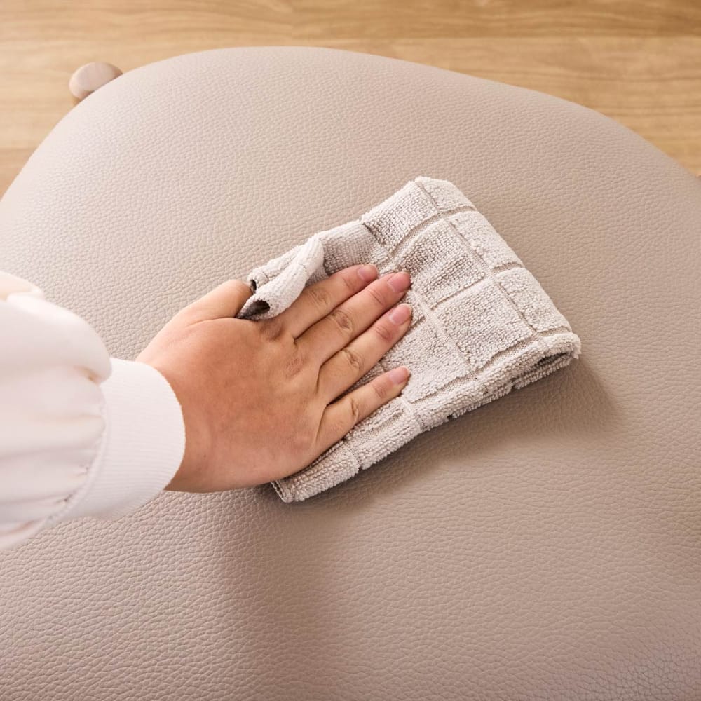 ◆座面には汚れてもサッと拭ける合成皮革を使用。