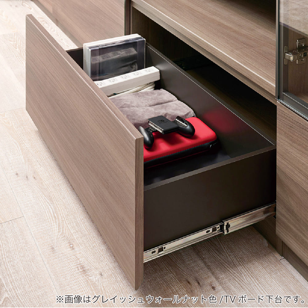 ◆下台フラップ扉には、扉を閉めた状態でリモコン操作可能な同色仕上げガラスを採用。