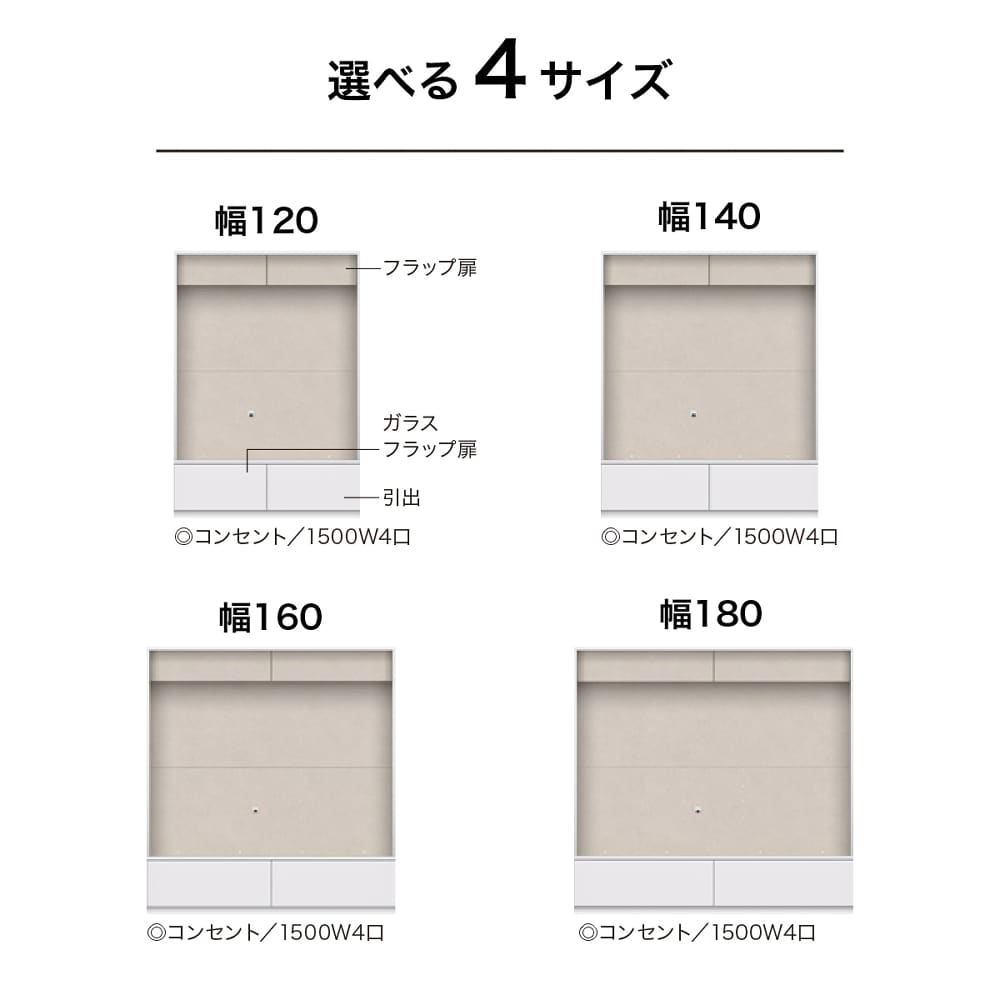◆テレビボードのサイズは1200・1400・1600・1800と細かくご用意をしており、テレビのサイズに合わせてお選びいただけます。