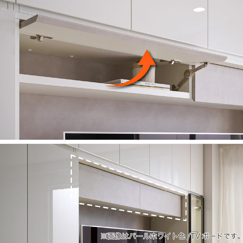 ◆下台フラップ扉には、扉を閉めた状態でリモコン操作可能な同色仕上げガラスを採用。