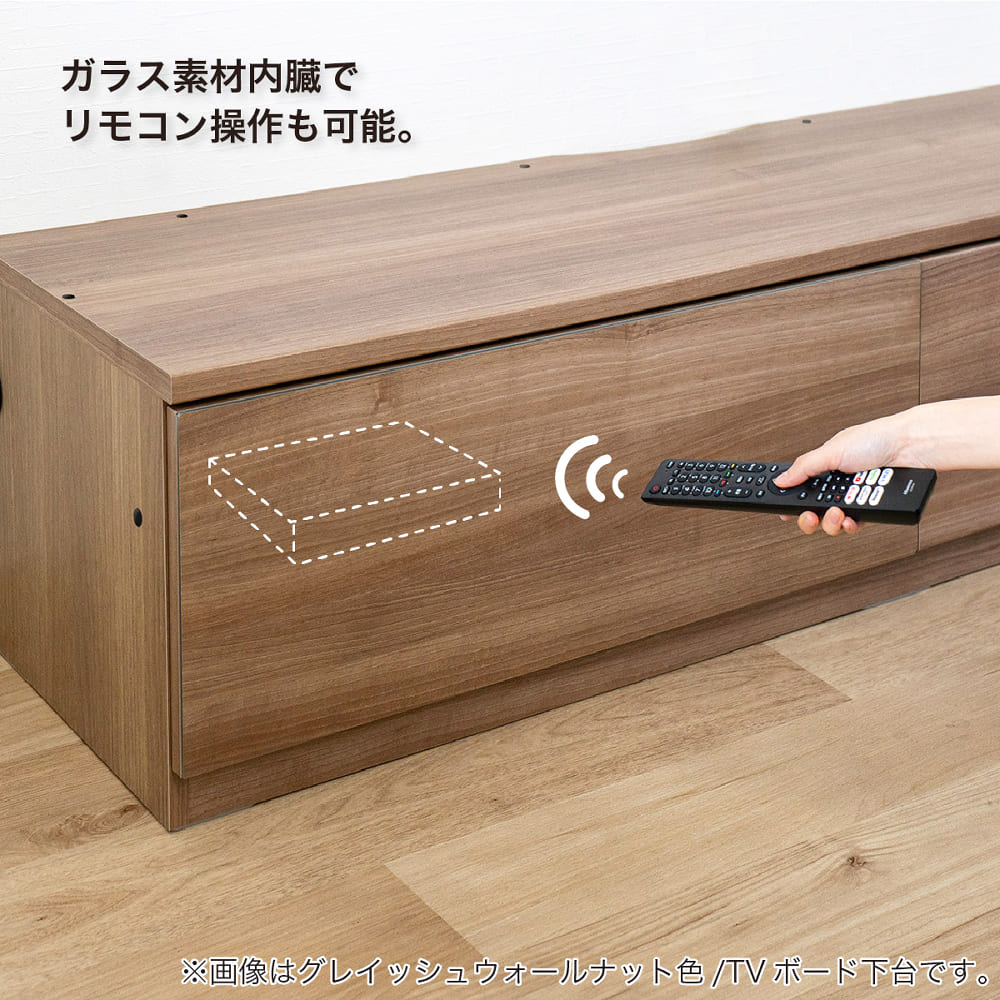 ◆下台フラップ扉には、扉を閉めた状態でリモコン操作可能な同色仕上げガラスを採用。
