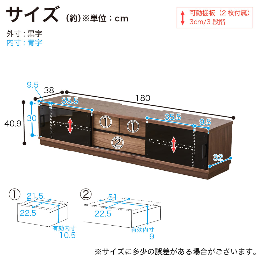 | サイズ: | 幅179.5cm ×奥行38cm ×高さ40.9cm |