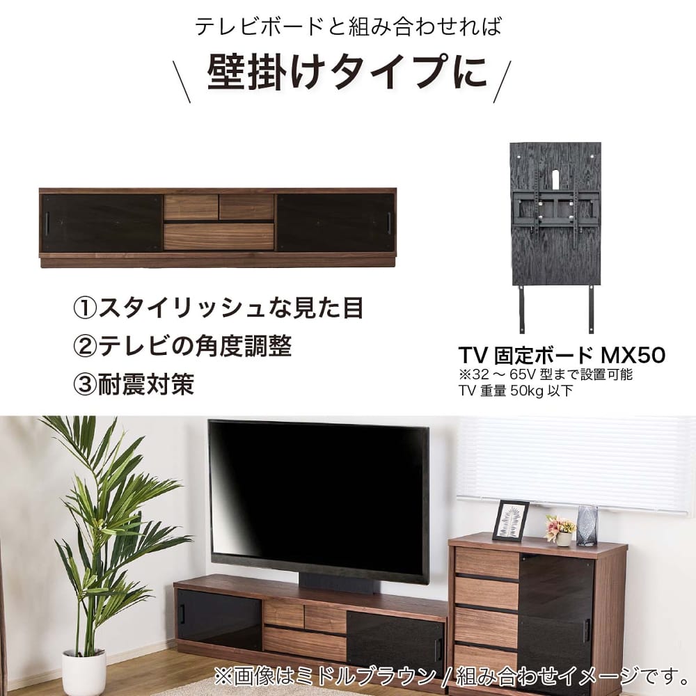 ローボード(テレビ台) WO 180LB LBR《壁掛けパネルセット》[ホームズオリジナル]