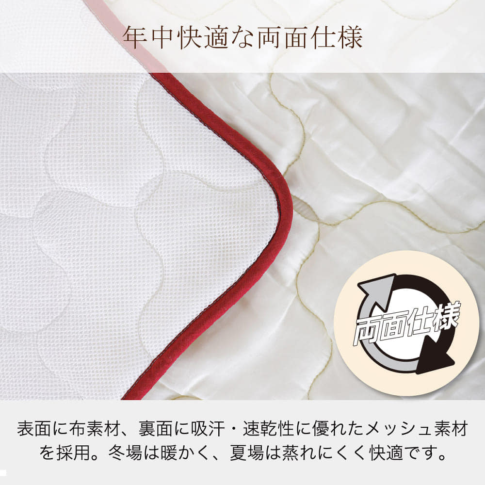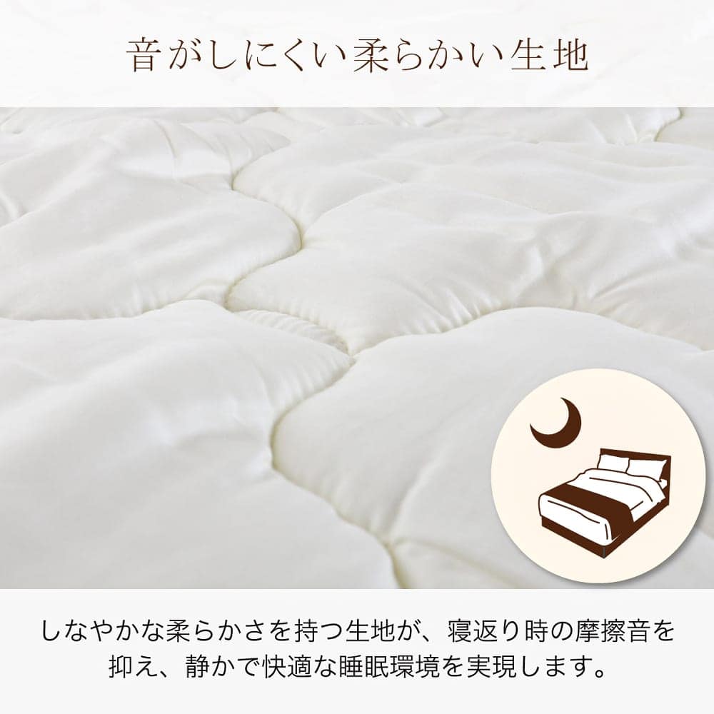 表面に、シルクのような肌ざわりの、天然繊維リヨセルを使用。吸湿発散性に優れており、シワや洗濯後の縮みも少ないのが特長です。