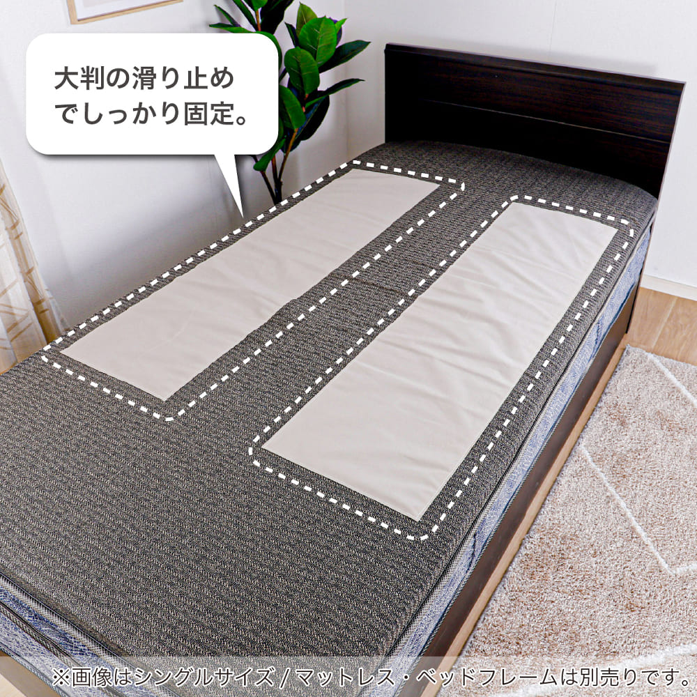 《どんなマットレスでもユーロトップのような寝心地へランクアップしてくれます》◆裏面には滑り止めが付いているため、四隅にゴムをかける必要はありません。