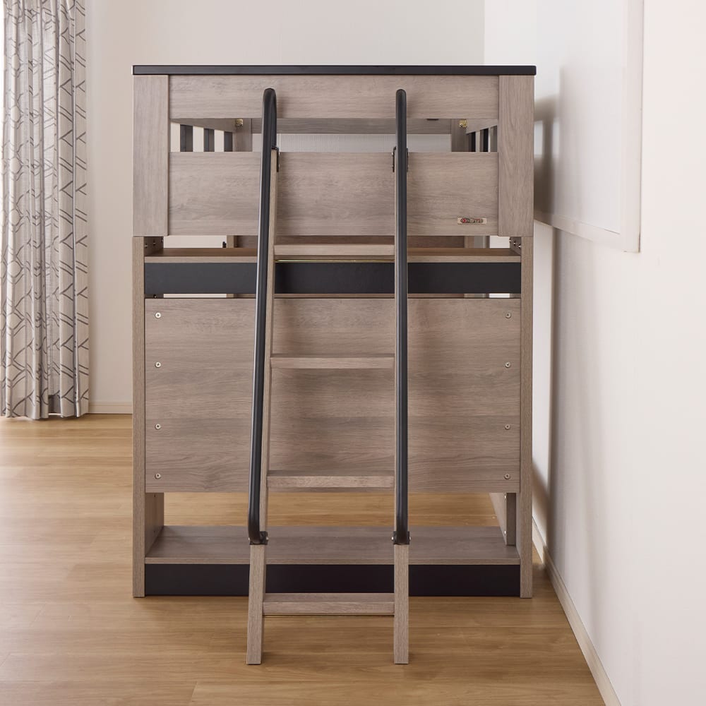 ◆サポートバー付きはしご:上段部の上り下りに安心なサポートバーを標準装備。
