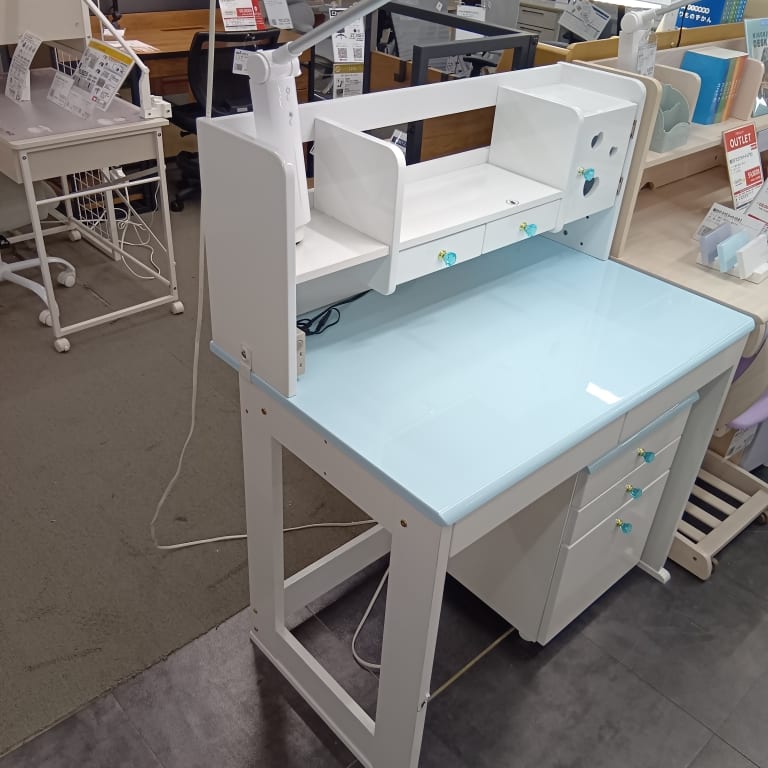【草加店 関東一部地域限定 展示特価品】 棚付デスク【ライト付き】 ESステラMS-523 BL/HCL-8W
