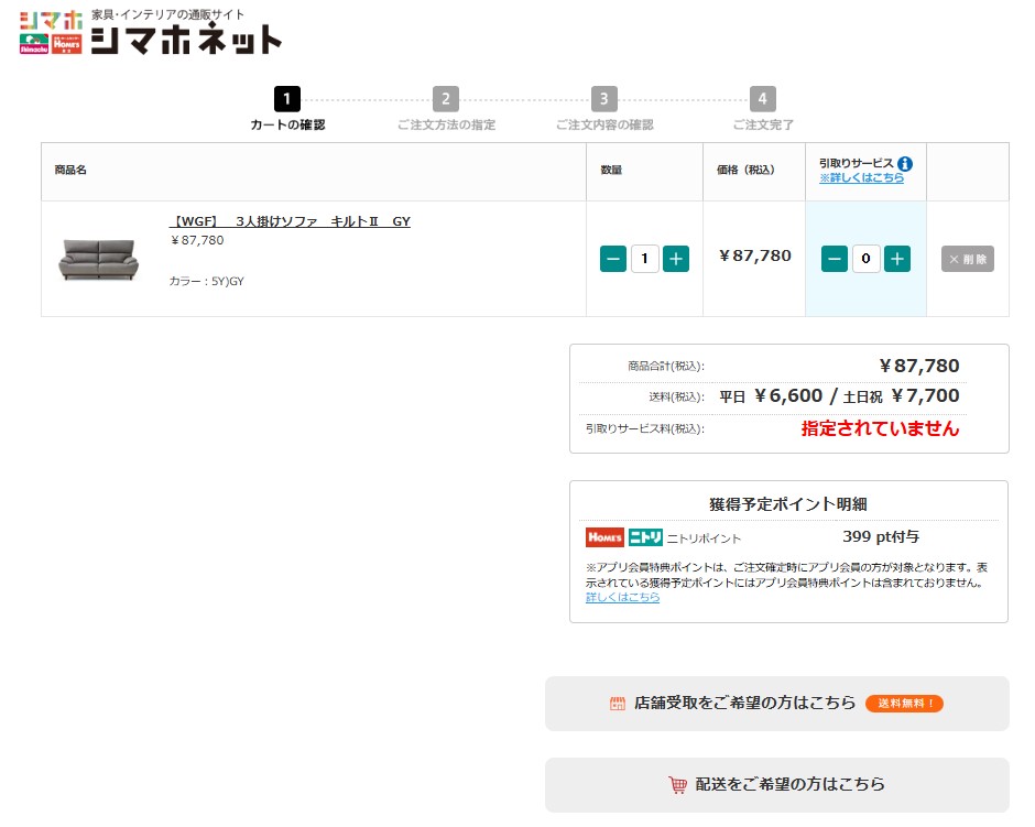 ※引取り対象外の商品には、カート画面の引取り欄には表示されません。