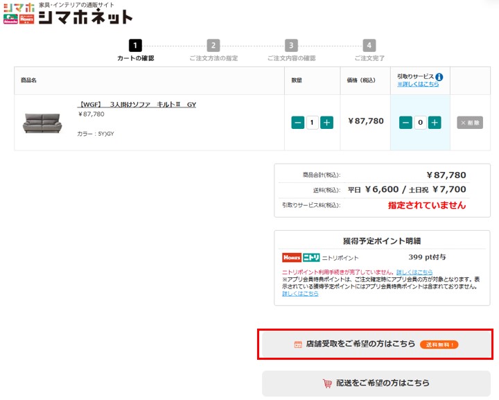 ※ニトリポイント利用手続きは、ネット注文時のみ受付可能です。店舗受取り時のポイント付与は致しかねます。