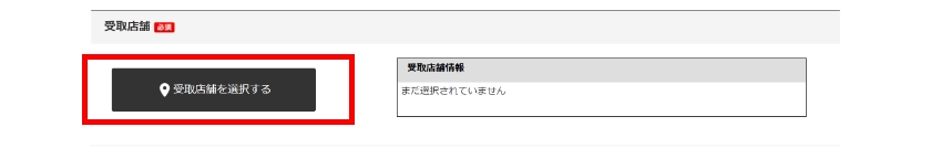 ご注文方法の指定画面にて、「受取店舗を選択する」ボタンより、表示される店舗一覧から受取店舗をご指定ください。