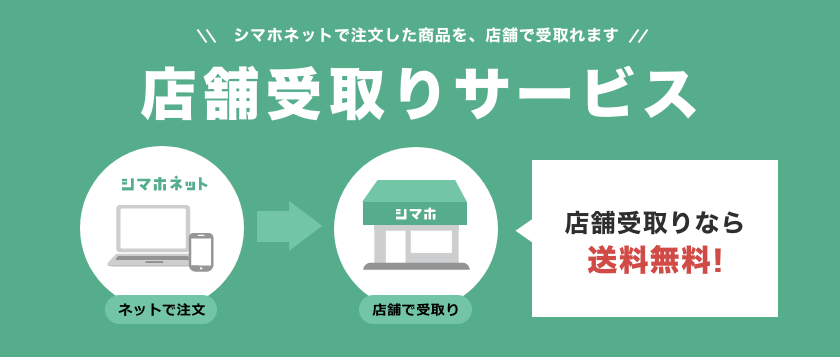 シマホネットで掲載している一部の商品は店舗受取り可能でございます。